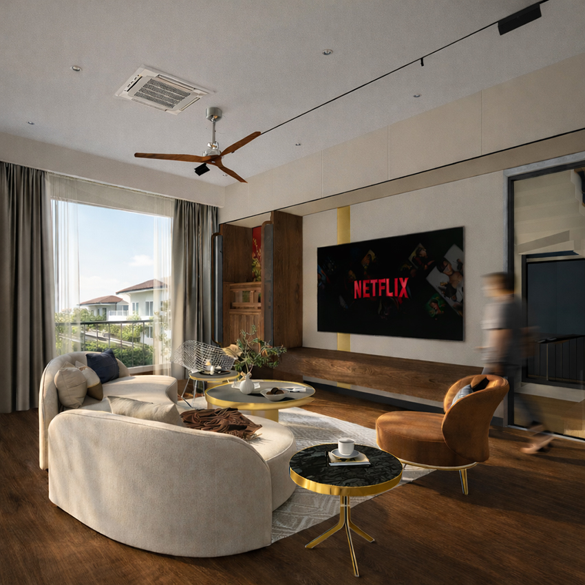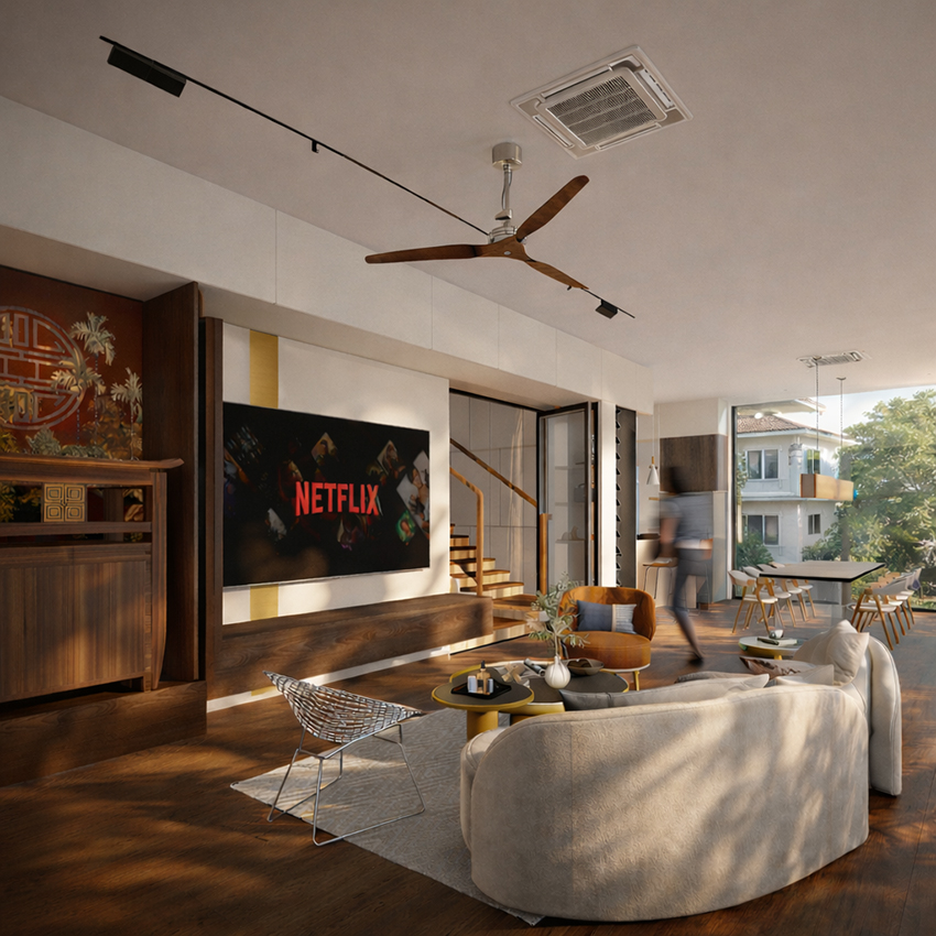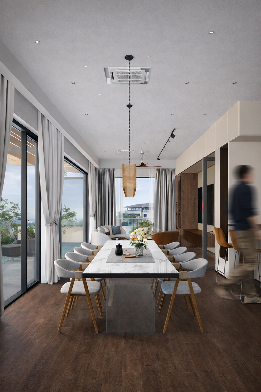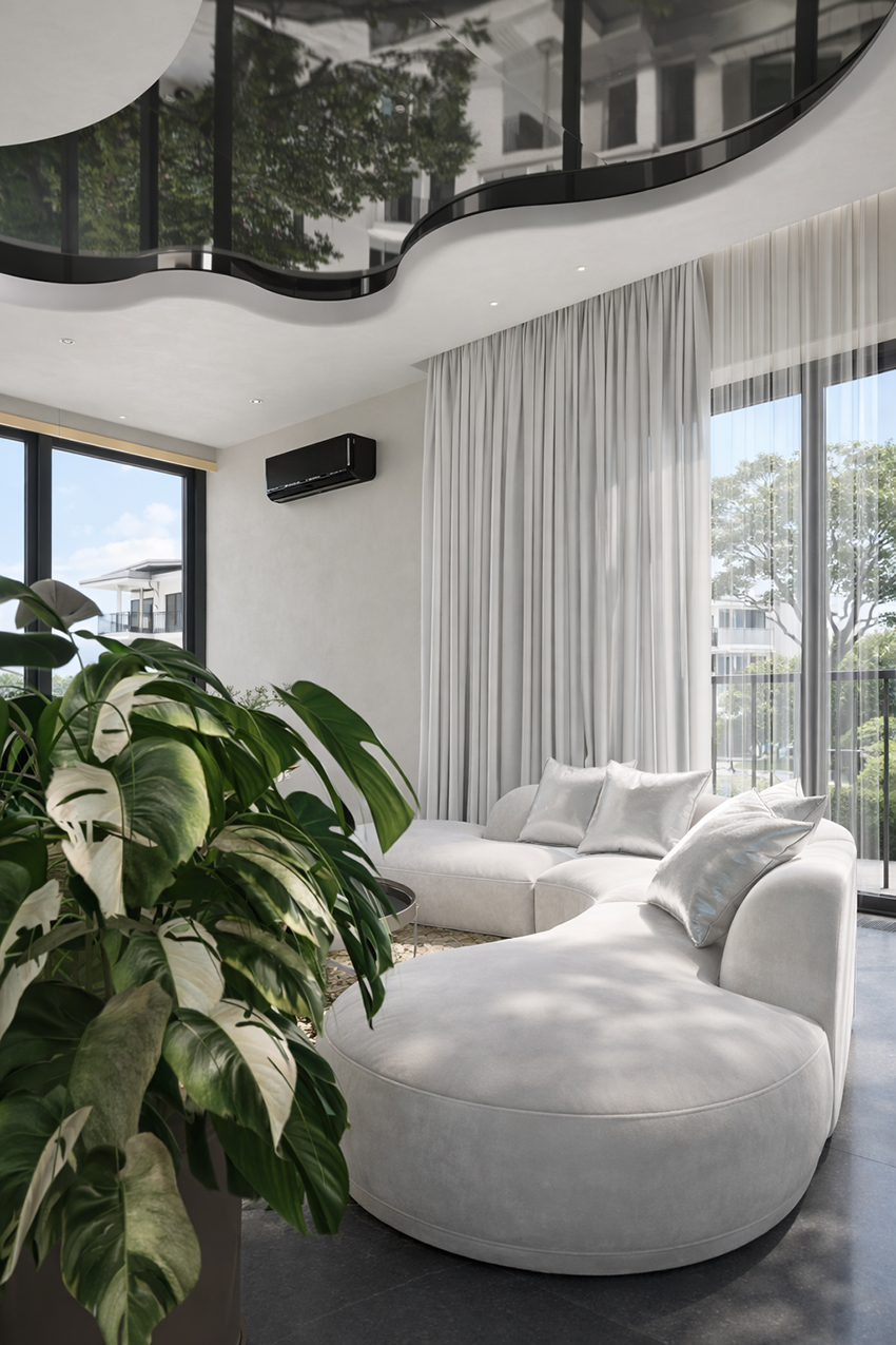 Ngôn ngữ thiết kế tổng thể của công trình là sự chú ý đến khả năng kết nối của các không gian, khi mà nhu cầu các không gian sinh hoạt dẫn tới việc phân chia vách ngăn rất nhiều, nhưng vẫn phải tạo ra những khoảng kết nối vô hình, và dễ tiếp cận.