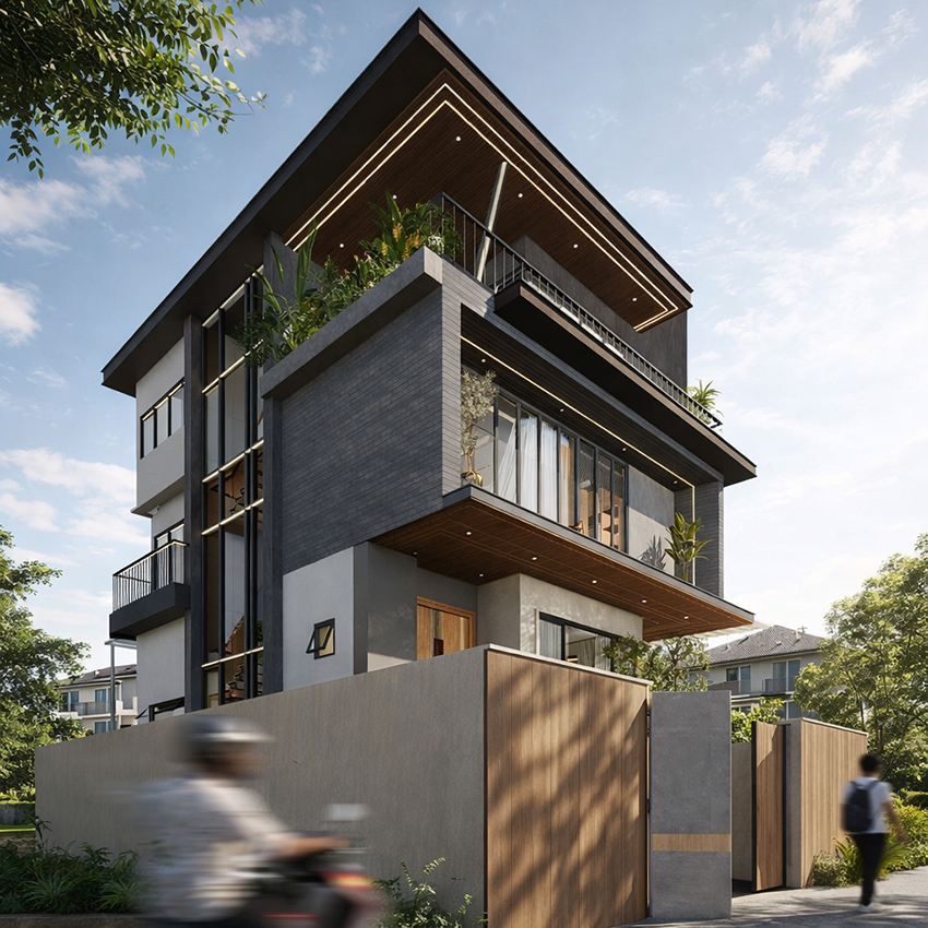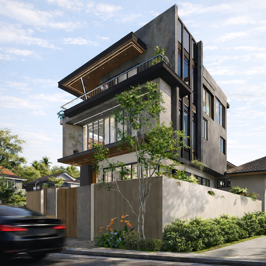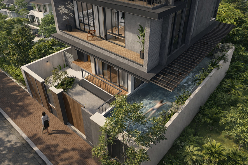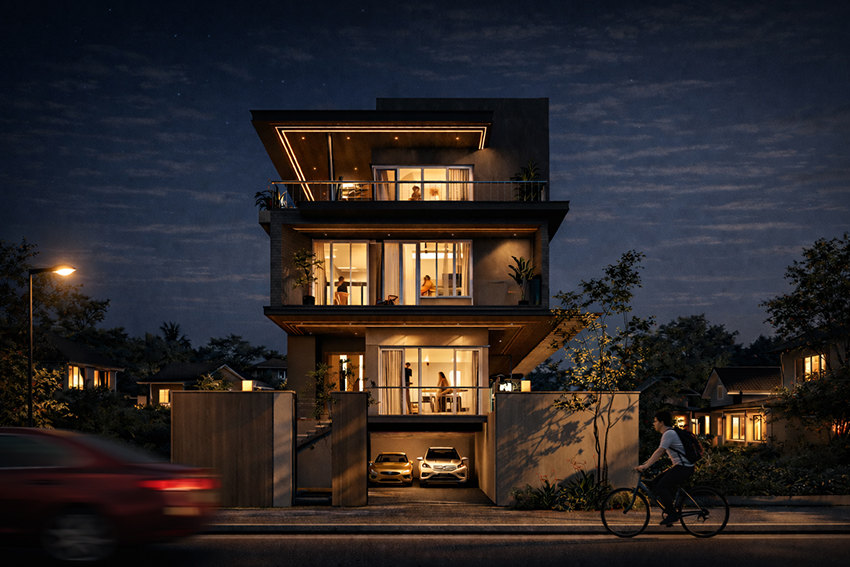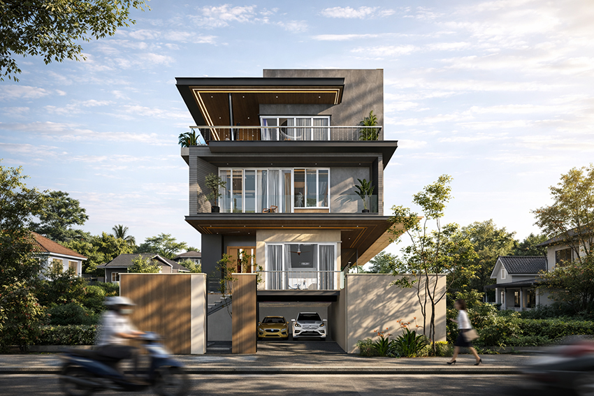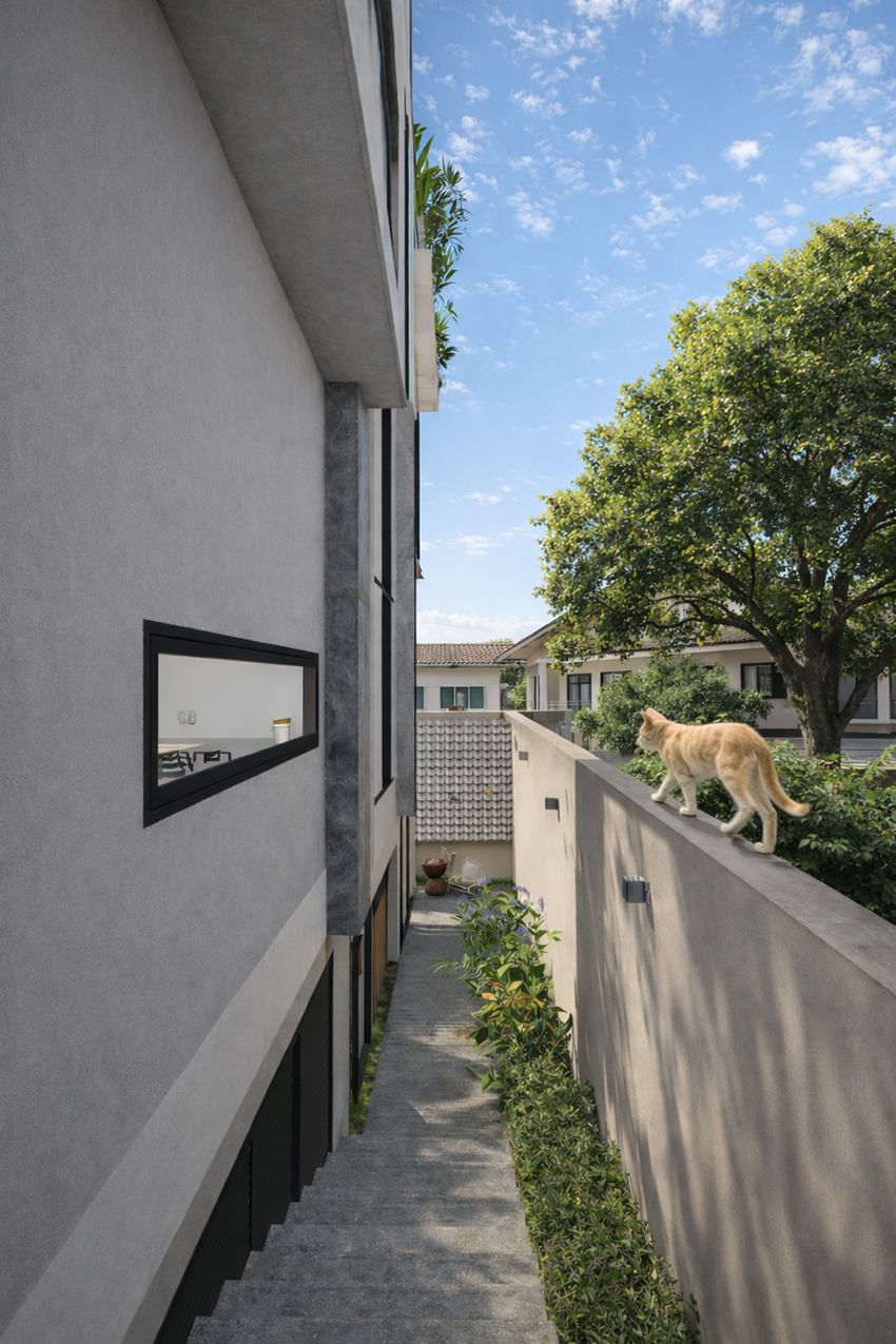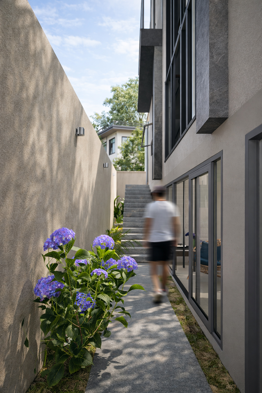 Cuối con đường, nằm trong góc phố thuộc 1 KDC mới, các công trình đều tuân theo những quy định về mẫu nhà truyền thống, có màu sắc và tinh thần hoài niệm. Riêng với Nhuận House nổi bật với những triết và tone màu thiết kế hoàn toàn riêng biệt.